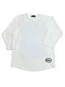 ネック部は、襟の伸びが少ないバインダー始末で、裾をラウンドシェープさせたラグラン・ベースボールTシャツタイプ。